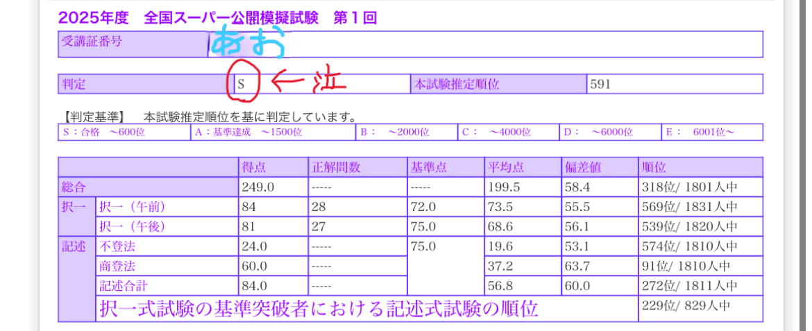 模試S判定でも、司法書士試験には落ちます。