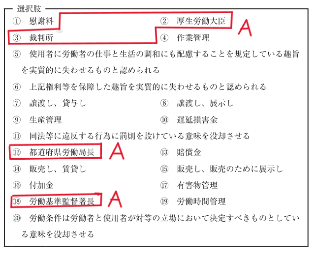 (令和7年度社労士試験の労働基準法「A」の空欄の選択肢をグルーピングした例になります。)