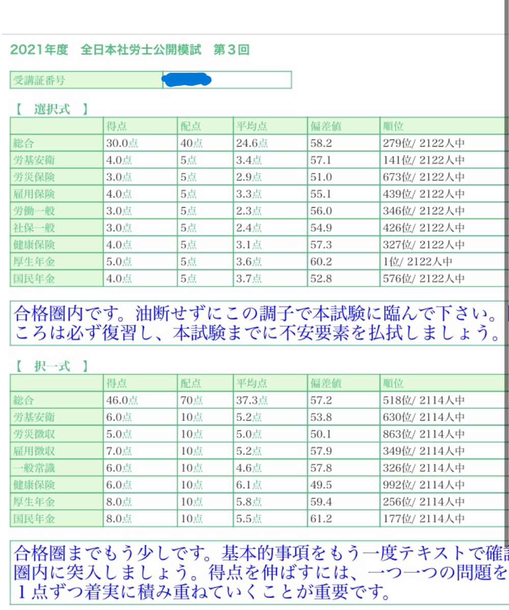 私は、結局本番の試験を3回受験しました。2回目の受験で、労一が1点足りないがために、もう1年という経験をしました。